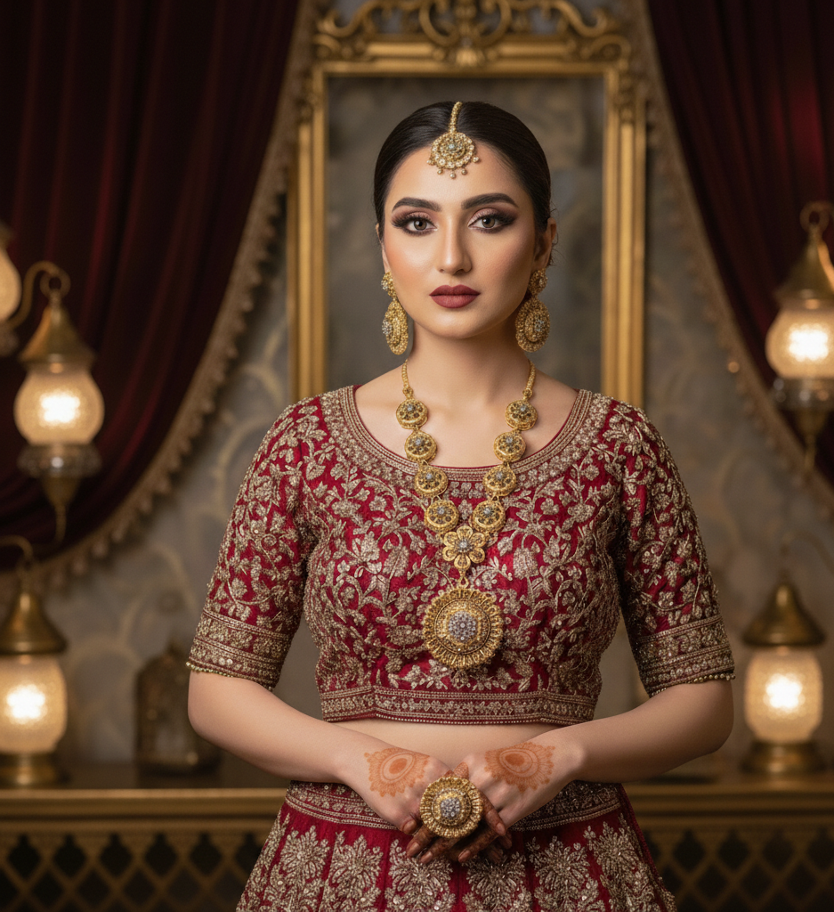 Traditional Gold-Toned Mala Jewelry Set – Necklace, Earrings, Ring